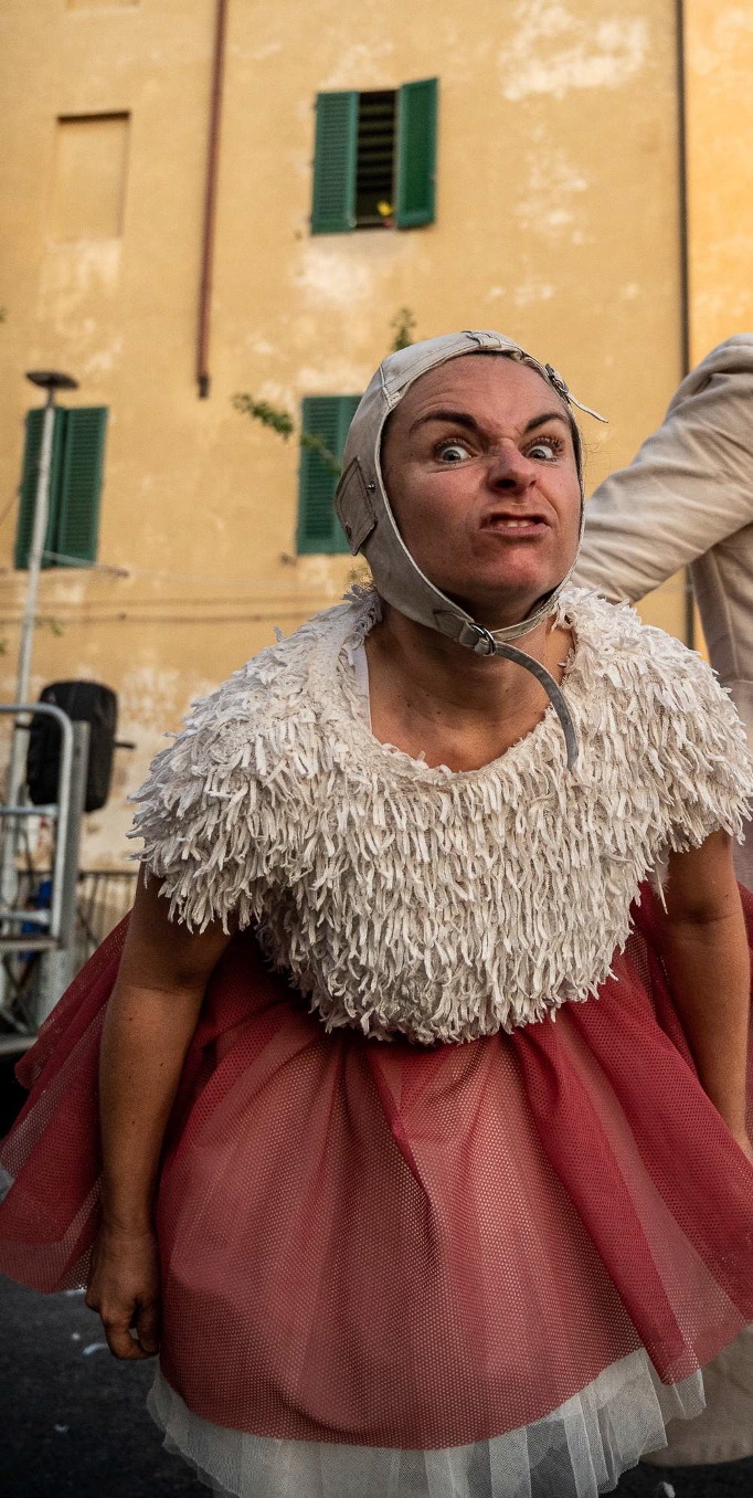 Arrivano da lontano, viaggiano senza meta da non si sa quanto tempo. Una coppia di clown a bordo del loro bizzarro veicolo di rame e metallo, con ruote, motore e impianto audio, animerà questo museo. All’apparenza sono due personaggi bizzarri e fuori dal comune, ma poi si scoprono ballerini, atleti, tra slapstick e giochi l’intento é far divertire il pubblico. Il loro veicolo è la loro casa e la piazza è il luogo ideale per prendersi una pausa durante il lungo viaggio. In questa sosta condivideranno un po' della loro visione del mondo fatta di gioco, movimento, danza e magia per poi partire verso la prossima destinazione a bordo del loro fantastico mezzo.